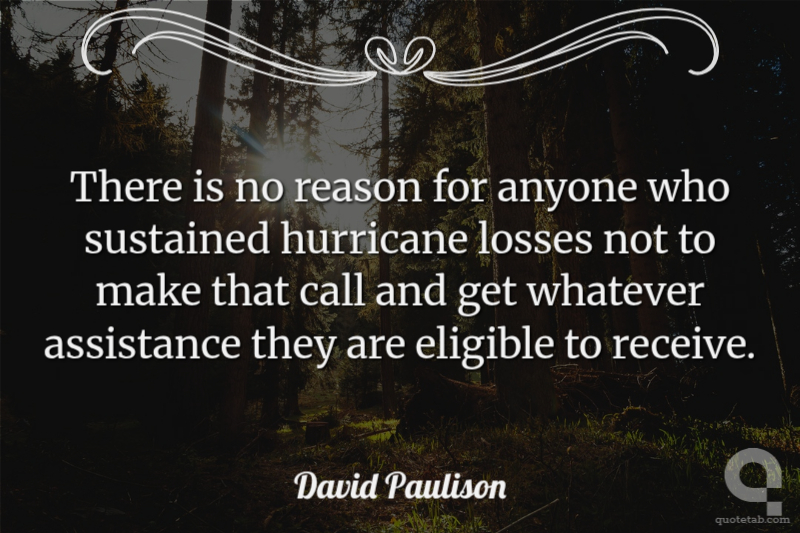 There is no reason for anyone who sustained hurricane losses not to make that call and get whatever assistance they are eligible to receive.