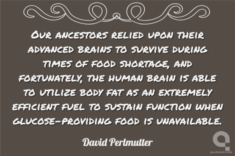 Our ancestors relied upon their advanced brains to survive during times of food shortage, and fortunately, the human brain is able to utilize body fat as an extremely efficient fuel to sustain function when glucose-providing food is unavailable.