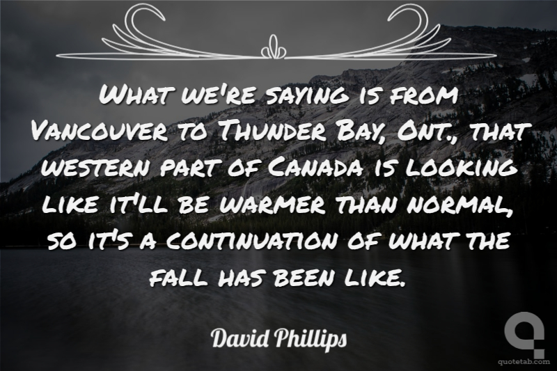 What we're saying is from Vancouver to Thunder Bay, Ont., that western part of Canada is looking like it'll be warmer than normal, so it's a continuation of what the fall has been like.