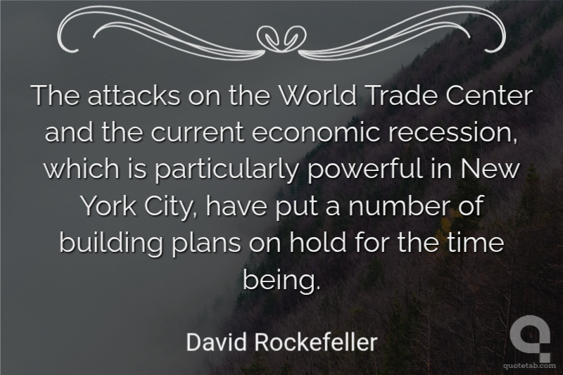 The attacks on the World Trade Center and the current economic recession, which is particularly powerful in New York City, have put a number of building plans on hold for the time being.