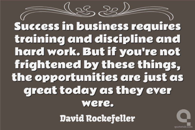 Success in business requires training and discipline and hard work. But if you're not frightened by these things, the opportunities are just as great today as they ever were.