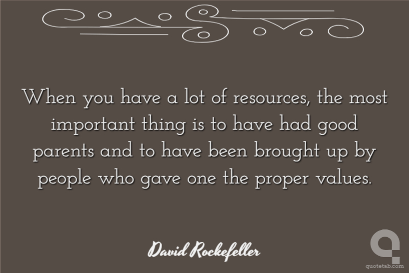 When you have a lot of resources, the most important thing is to have had good parents and to have been brought up by people who gave one the proper values.