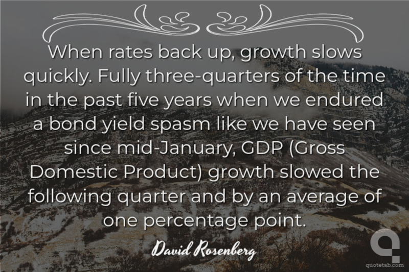 When rates back up, growth slows ... quickly. Fully three-quarters of the time in the past five years when we endured a bond yield spasm like we have seen since mid-January, GDP (Gross Domestic Product) growth slowed the following quarter and by an average of one percentage point.