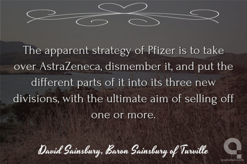 The apparent strategy of Pfizer is to take over AstraZeneca, dismember it, and put the different parts of it into its three new divisions, with the ultimate aim of selling off one or more.