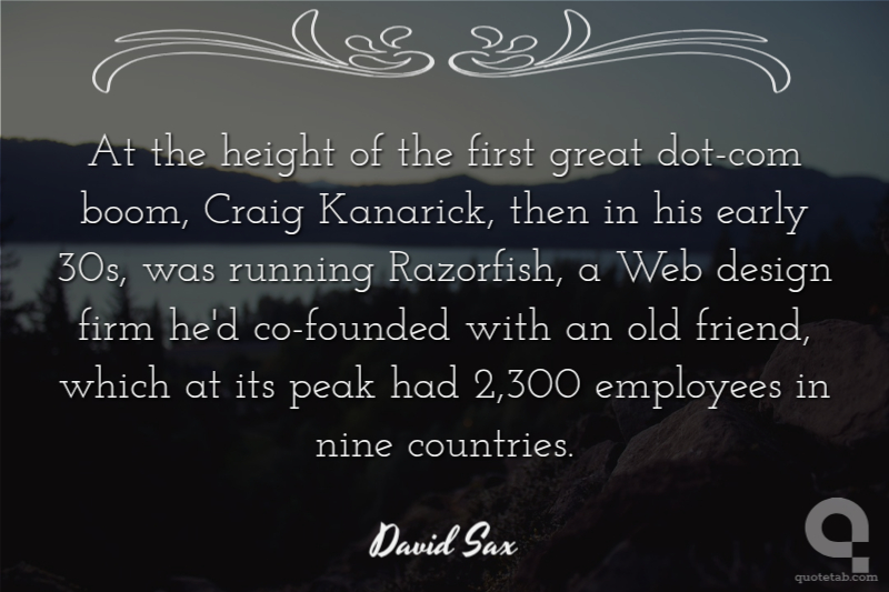 At the height of the first great dot-com boom, Craig Kanarick, then in his early 30s, was running Razorfish, a Web design firm he'd co-founded with an old friend, which at its peak had 2,300 employees in nine countries.