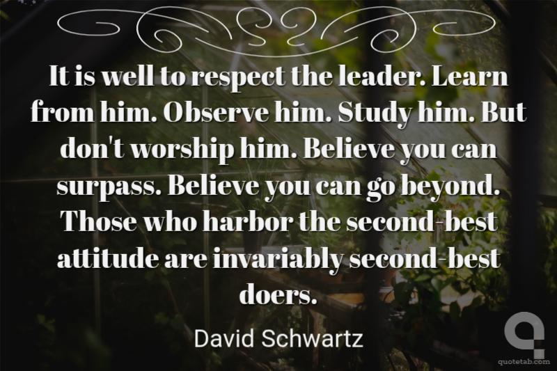 It is well to respect the leader. Learn from him. Observe him. Study him. But don't worship him. Believe you can surpass. Believe you can go beyond. Those who harbor the second-best attitude are invariably second-best doers.