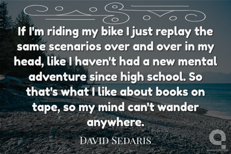 If I'm riding my bike I just replay the same scenarios over and over in my head, like I haven't had a new mental adventure since high school. So that's what I like about books on tape, so my mind can't wander anywhere.