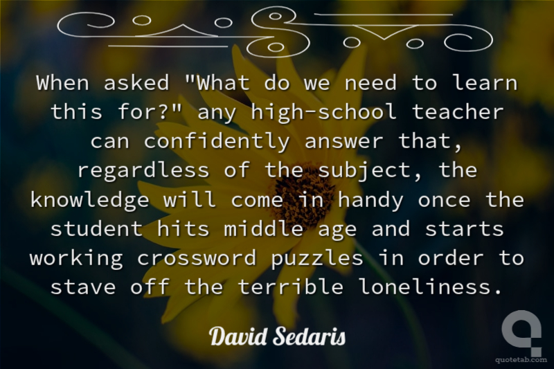 When asked "What do we need to learn this for?" any high-school teacher can confidently answer that, regardless of the subject, the knowledge will come in handy once the student hits middle age and starts working crossword puzzles in order to stave off the terrible loneliness.