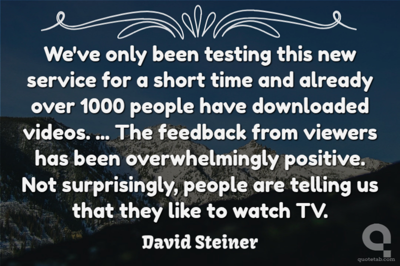 We've only been testing this new service for a short time and already over 1000 people have downloaded videos. ... The feedback from viewers has been overwhelmingly positive. Not surprisingly, people are telling us that they like to watch TV.