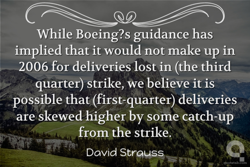 While Boeing?s guidance has implied that it would not make up in 2006 for deliveries lost in (the third quarter) strike, we believe it is possible that (first-quarter) deliveries are skewed higher by some catch-up from the strike.