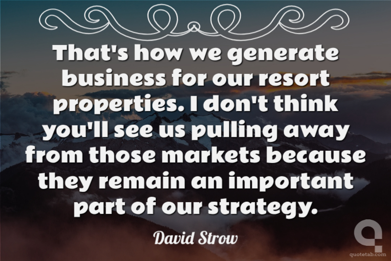 That's how we generate business for our resort properties. I don't think you'll see us pulling away from those markets because they remain an important part of our strategy.