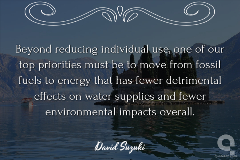 Beyond reducing individual use, one of our top priorities must be to move from fossil fuels to energy that has fewer detrimental effects on water supplies and fewer environmental impacts overall.