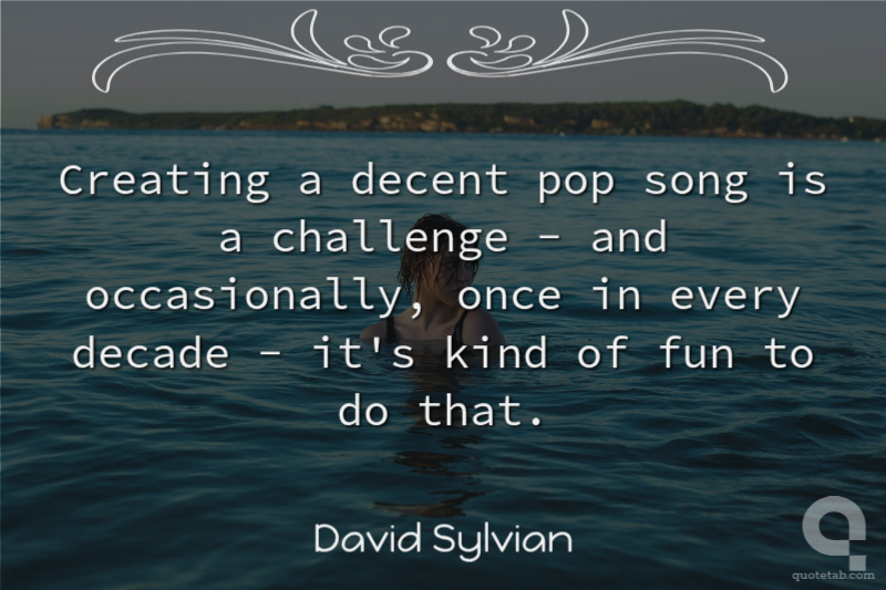 Creating a decent pop song is a challenge - and occasionally, once in every decade - it's kind of fun to do that.
