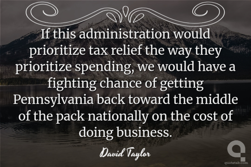 If this administration would prioritize tax relief the way they prioritize spending, we would have a fighting chance of getting Pennsylvania back toward the middle of the pack nationally on the cost of doing business.
