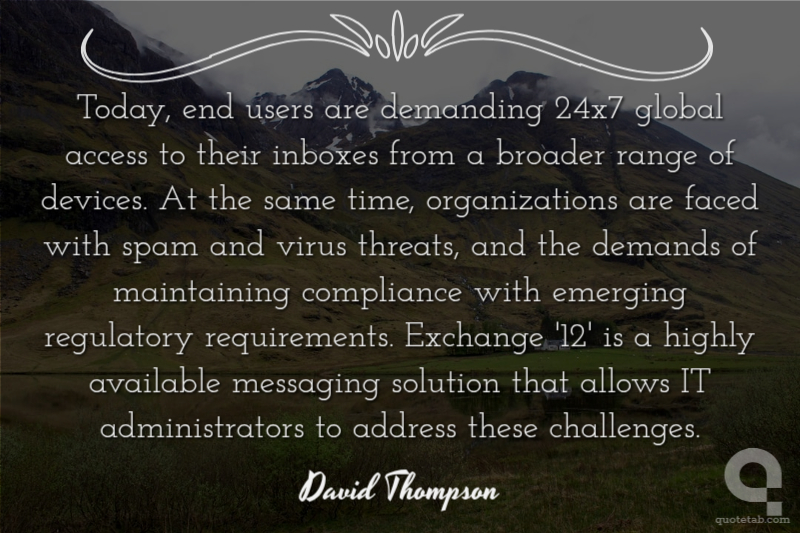 Today, end users are demanding 24x7 global access to their inboxes from a broader range of devices. At the same time, organizations are faced with spam and virus threats, and the demands of maintaining compliance with emerging regulatory requirements. Exchange '12' is a highly available messaging solution that allows IT administrators to address these challenges.