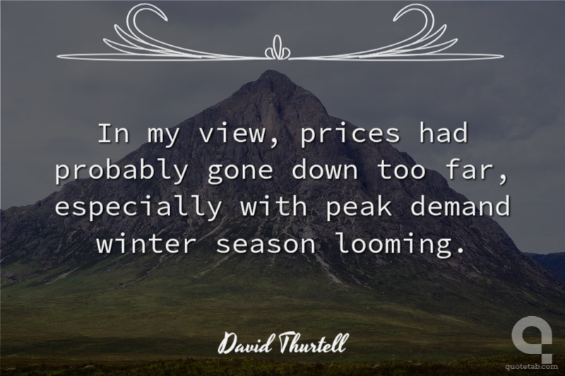 In my view, prices had probably gone down too far, especially with peak demand winter season looming.