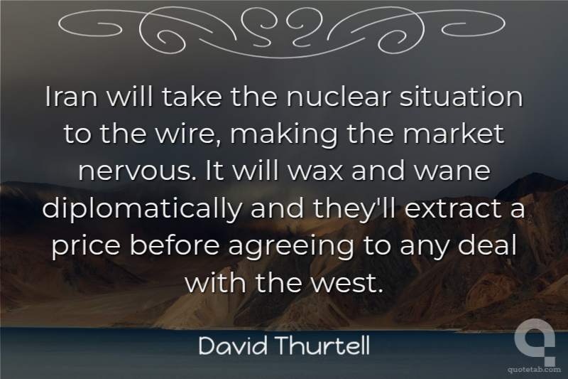 Iran will take the nuclear situation to the wire, making the market nervous. It will wax and wane diplomatically and they'll extract a price before agreeing to any deal with the west.