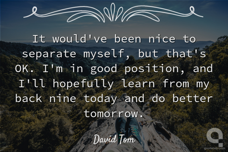 It would've been nice to separate myself, but that's OK. I'm in good position, and I'll hopefully learn from my back nine today and do better tomorrow.