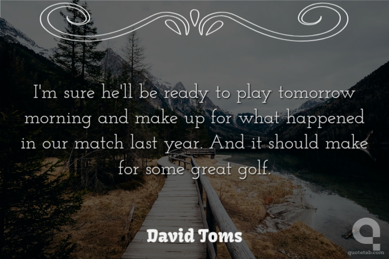 I'm sure he'll be ready to play tomorrow morning and make up for what happened in our match last year. And it should make for some great golf.