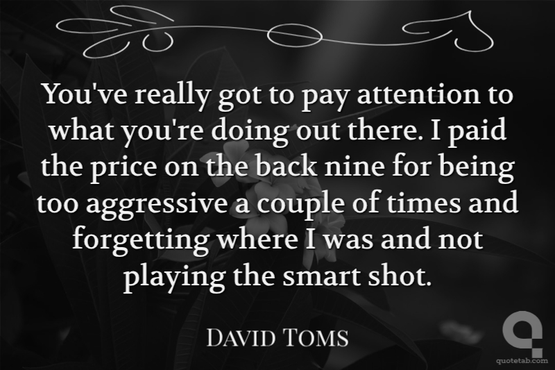 You've really got to pay attention to what you're doing out there. I paid the price on the back nine for being too aggressive a couple of times and forgetting where I was and not playing the smart shot.