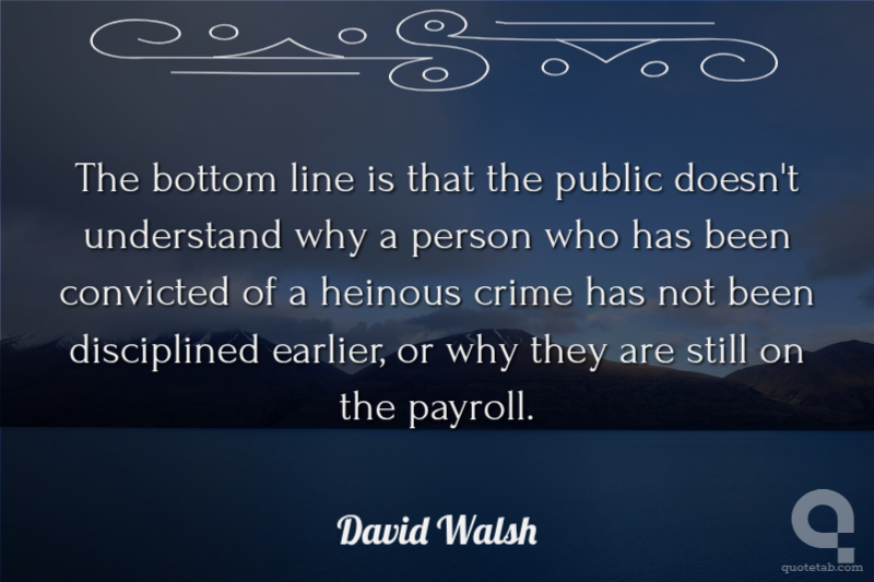 The bottom line is that the public doesn't understand why a person who has been convicted of a heinous crime has not been disciplined earlier, or why they are still on the payroll.
