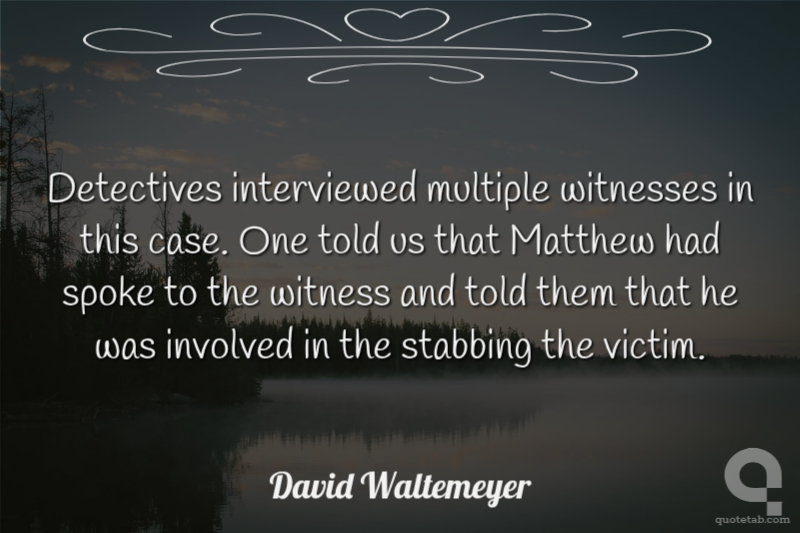 Detectives interviewed multiple witnesses in this case. One told us that Matthew had spoke to the witness and told them that he was involved in the stabbing the victim.