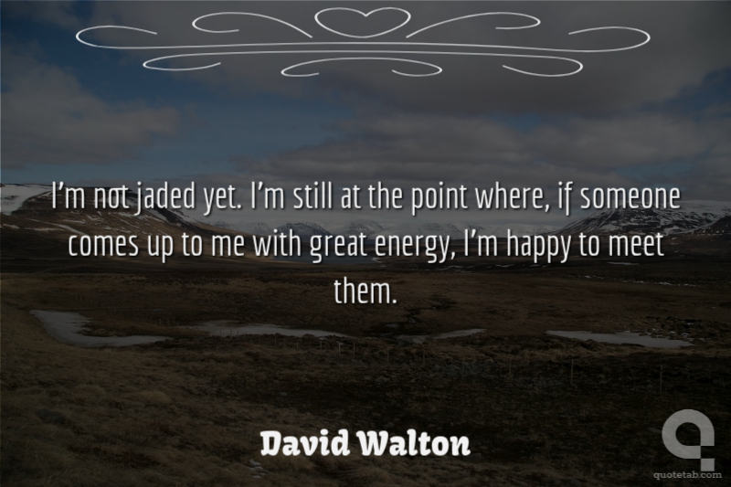 I'm not jaded yet. I'm still at the point where, if someone comes up to me with great energy, I'm happy to meet them.