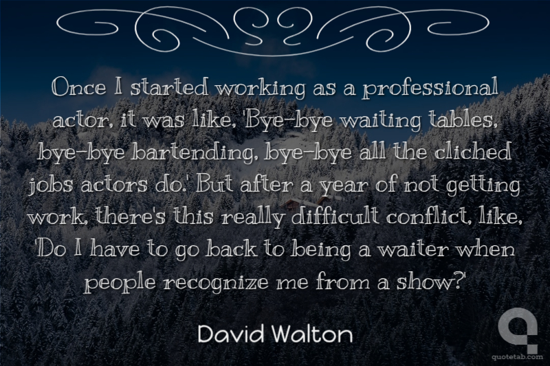 Once I started working as a professional actor, it was like, 'Bye-bye waiting tables, bye-bye bartending, bye-bye all the cliched jobs actors do.' But after a year of not getting work, there's this really difficult conflict, like, 'Do I have to go back to being a waiter when people recognize me from a show?'