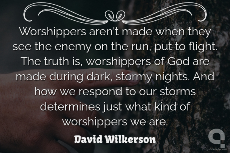 Worshippers aren't made when they see the enemy on the run, put to flight. The truth is, worshippers of God are made during dark, stormy nights. And how we respond to our storms determines just what kind of worshippers we are.