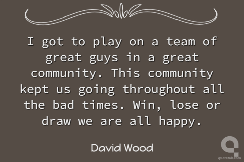 I got to play on a team of great guys in a great community. This community kept us going throughout all the bad times. Win, lose or draw we are all happy.