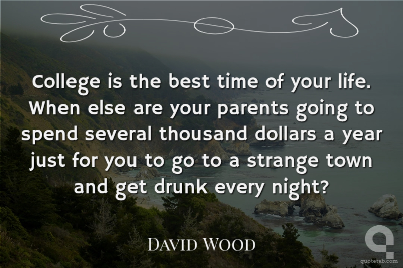 College is the best time of your life. When else are your parents going to spend several thousand dollars a year just for you to go to a strange town and get drunk every night?