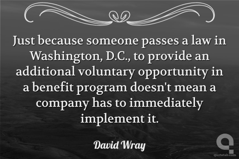 Just because someone passes a law in Washington, D.C., to provide an additional voluntary opportunity in a benefit program doesn't mean a company has to immediately implement it.