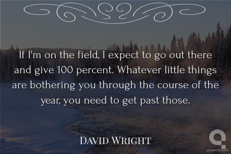 If I'm on the field, I expect to go out there and give 100 percent. Whatever little things are bothering you through the course of the year, you need to get past those.