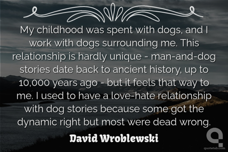 My childhood was spent with dogs, and I work with dogs surrounding me. This relationship is hardly unique - man-and-dog stories date back to ancient history, up to 10,000 years ago - but it feels that way to me. I used to have a love-hate relationship with dog stories because some got the dynamic right but most were dead wrong.
