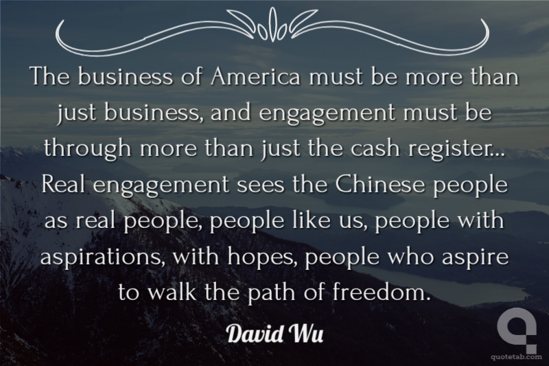 The business of America must be more than just business, and engagement must be through more than just the cash register... Real engagement sees the Chinese people as real people, people like us, people with aspirations, with hopes, people who aspire to walk the path of freedom.