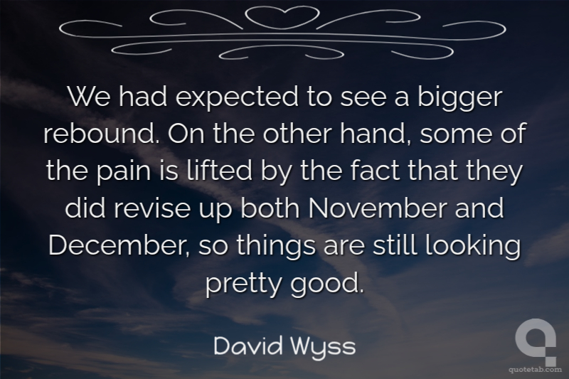 We had expected to see a bigger rebound. On the other hand, some of the pain is lifted by the fact that they did revise up both November and December, so things are still looking pretty good.