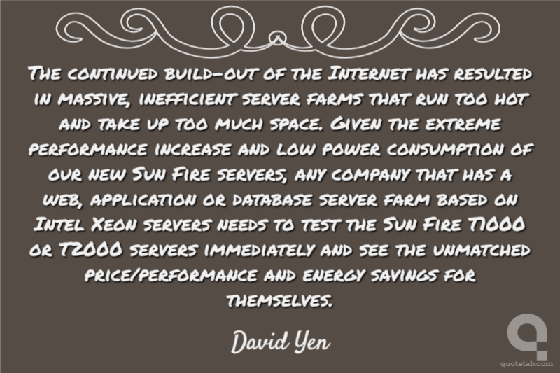 The continued build-out of the Internet has resulted in massive, inefficient server farms that run too hot and take up too much space. Given the extreme performance increase and low power consumption of our new Sun Fire servers, any company that has a web, application or database server farm based on Intel Xeon servers needs to test the Sun Fire T1000 or T2000 servers immediately and see the unmatched price/performance and energy savings for themselves.