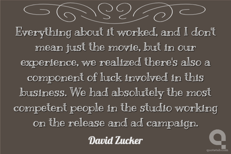 Everything about it worked, and I don't mean just the movie, but in our experience, we realized there's also a component of luck involved in this business. We had absolutely the most competent people in the studio working on the release and ad campaign.