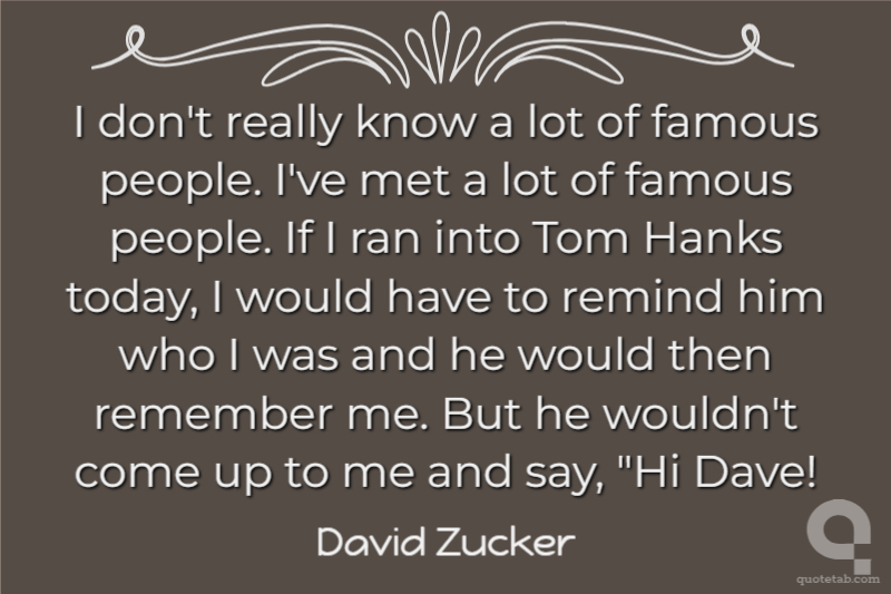 I don't really know a lot of famous people. I've met a lot of famous people. If I ran into Tom Hanks today, I would have to remind him who I was and he would then remember me. But he wouldn't come up to me and say, "Hi Dave!