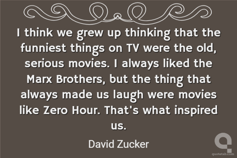 I think we grew up thinking that the funniest things on TV were the old, serious movies. I always liked the Marx Brothers, but the thing that always made us laugh were movies like Zero Hour. That's what inspired us.