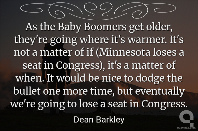 As the Baby Boomers get older, they're going where it's warmer. It's not a matter of if (Minnesota loses a seat in Congress), it's a matter of when. It would be nice to dodge the bullet one more time, but eventually we're going to lose a seat in Congress.