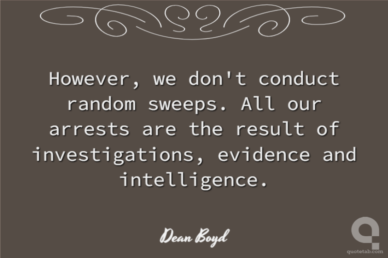 However, we don't conduct random sweeps. All our arrests are the result of investigations, evidence and intelligence.