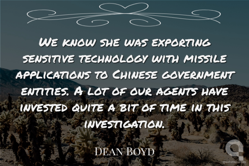 We know she was exporting sensitive technology with missile applications to Chinese government entities. A lot of our agents have invested quite a bit of time in this investigation.