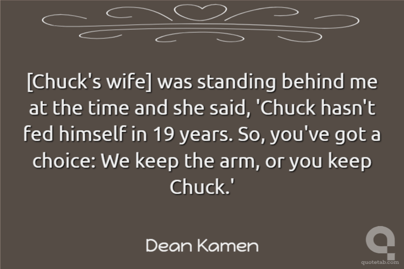 [Chuck's wife] was standing behind me at the time and she said, 'Chuck hasn't fed himself in 19 years. So, you've got a choice: We keep the arm, or you keep Chuck.'