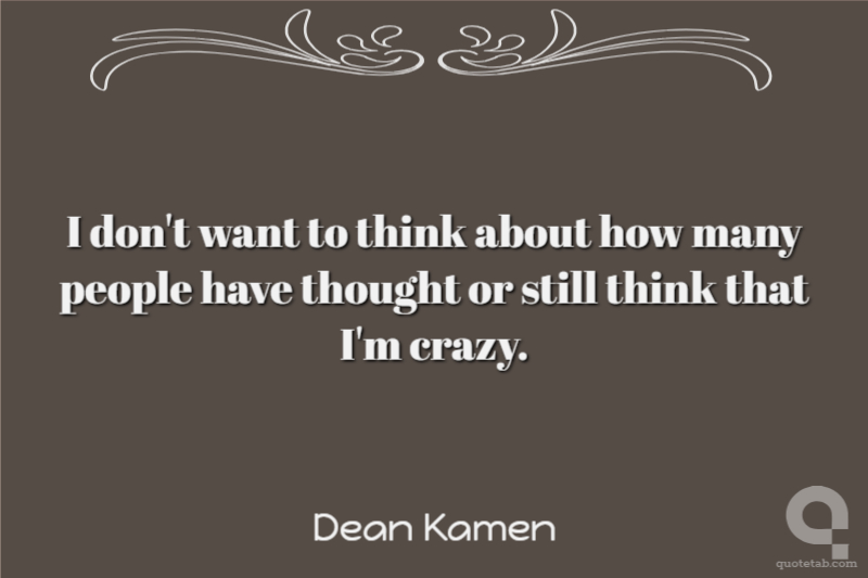 I don't want to think about how many people have thought or still think that I'm crazy.