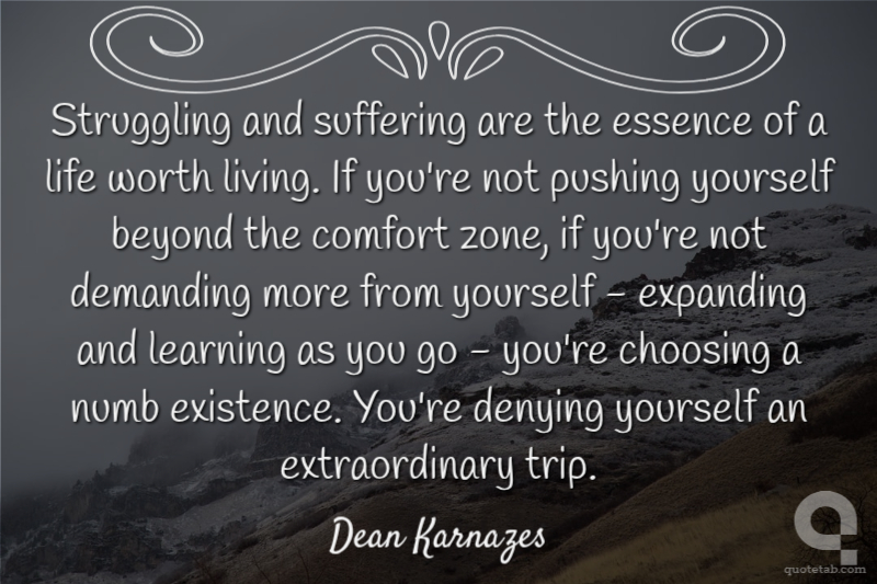 Struggling and suffering are the essence of a life worth living. If you're not pushing yourself beyond the comfort zone, if you're not demanding more from yourself - expanding and learning as you go - you're choosing a numb existence. You're denying yourself an extraordinary trip.
