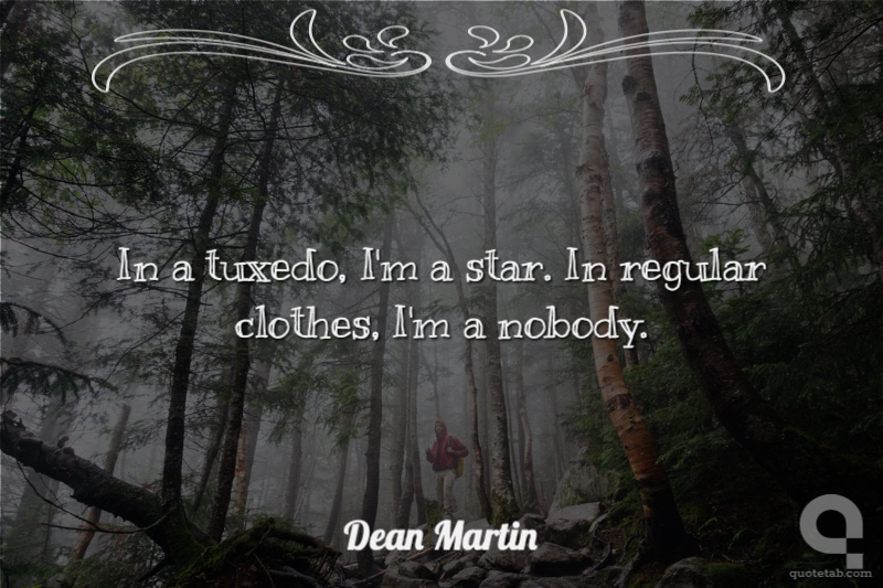 In a tuxedo, I'm a star. In regular clothes, I'm a nobody.
