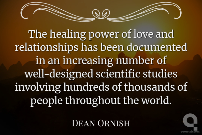 The healing power of love and relationships has been documented in an increasing number of well-designed scientific studies involving hundreds of thousands of people throughout the world.