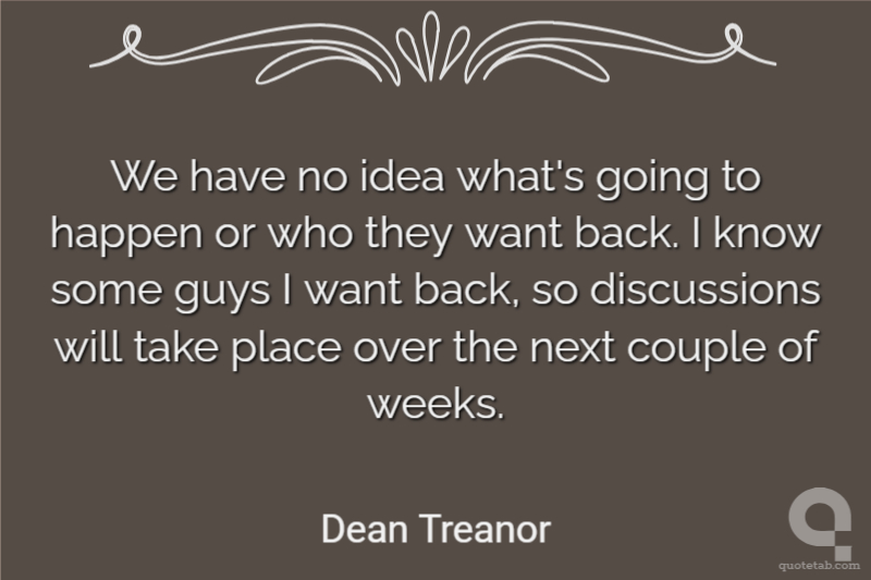 We have no idea what's going to happen or who they want back. I know some guys I want back, so discussions will take place over the next couple of weeks.