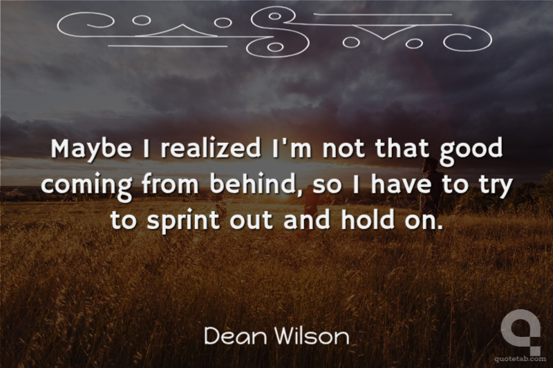 Maybe I realized I'm not that good coming from behind, so I have to try to sprint out and hold on.
